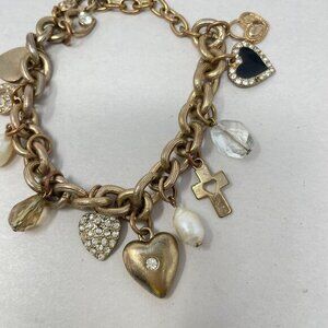 You & I Charm Bracelet Gold-Tone Hearts Cross Religious Love Chain Dangle