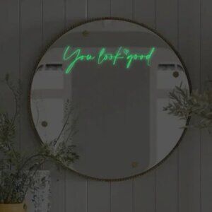 You Look Good Text with Heart Glow in the Dark Mirror Wall Car Sticker