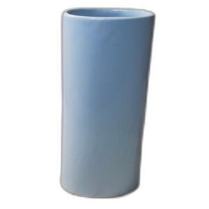 This vase is 6" tall x 3" wide. It is made of ceramic.
