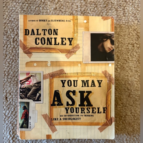"You May Ask Yourself" by Dalton Conley. Features a creative cover design with a collage style. Main colors are beige and black.