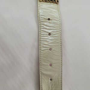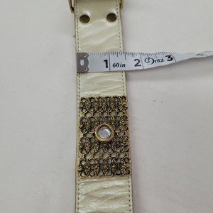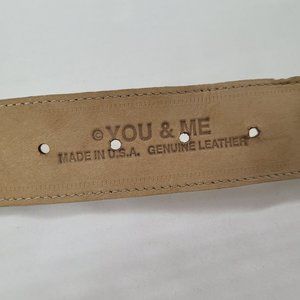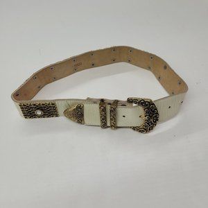 You & Me Belt Womens Small Cream Leather Gold Rhinestone Western Made in USA