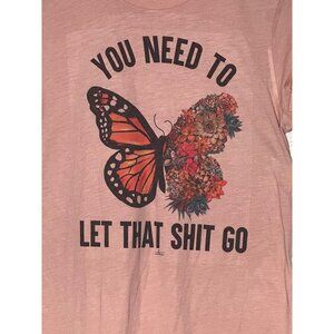 "You Need To Let That Shit Go" Butterfly Graphic Tee Orange Small Bella Canvas