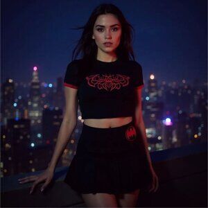 From the shadows of Gotham to the spotlight of your wardrobe, this pleated mini skirt channels the fearless energy of the Dark Knight.