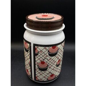 You and Me by Jessie Steele Ceramic Cookie Jar Kitchen Red Cherries “Cookies”