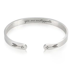 You are UNSTOPPABLE Inspirational Quote Bracelet STEEL SILVER COLOR Mantra Cuff Bangle