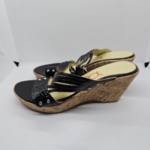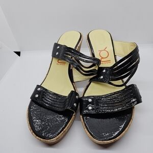 You by Crocs cork wedge slide sandals black patent leather US 8.5 EU 39