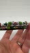 They are about 3" in diameter, with green leaves, pink flowers with a red center (on both). Gold tone accents here and there like standard cloisonne.