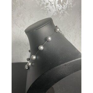 YouSi Grey Pearl Beaded Necklace With Adjustable Chain & Lobster Clasp
