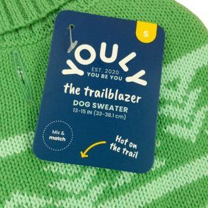 This comfortable, small size Youly dog sweater in a suave teal green color is ideal for trailblazing pets. Crafted from a soft cotton blend, it's new and ready to wear.