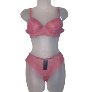 Youmita 36B Baroque Rose Symmetrical Mesh Lightly Lined Push Up Bra & Panty NWT