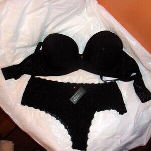 Youmita 42DD Black jacquard bra/2x Hipster Set NWT