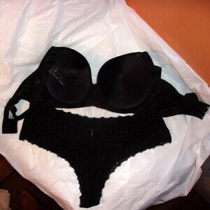 Youmita 42DD Black jacquard bra/2x Hipster Set NWT