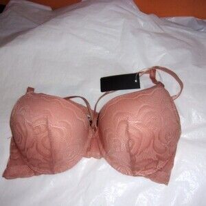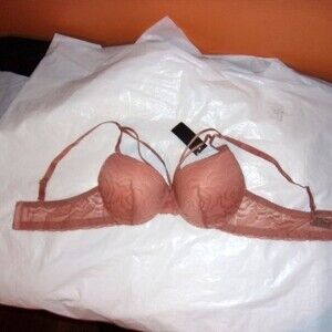 Youmita Cork Mesh 34B Push Up Bra w/Front Strap & Medium Coordinating Thong NWT