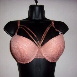 Youmita Cork Mesh 34C Push Up Bra w/Front Strap & Medium Coordinating Thong NWT