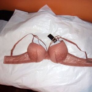 Youmita Cork Mesh 36B Push Up Bra w/Front Strap & Small Cork Mesh Thong NWT