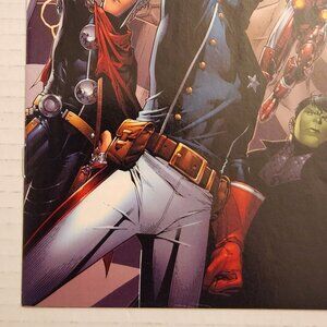 Written by Allan Heinberg Pencils & Cover by Jim Cheung Captain America, Iron Man, and Jessica Jones learn the secret origin of Iron Lad. Patriot leaves the team to go solo. And a familiar face shows up to demand a place on the team.