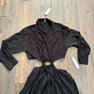 NWT Young Fabulous & Broke Black Cut Out Long Sleeve Collared Maxi Dress. Size L.