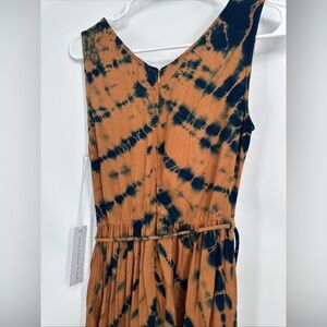 Young Fabulous & Broke Brown Blue Tie Dye Maxi Dress Pockets Size small NWT