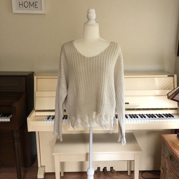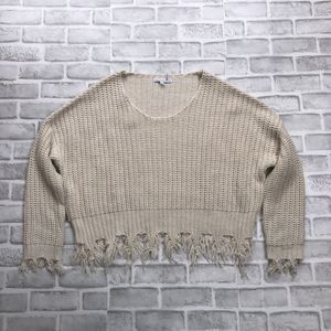 Young Fabulous & Broke Chunky Knit Distressed Raw Hem Oversized Sweater Size S/M