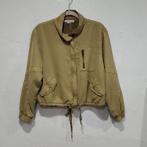 Young Fabulous & Broke Cropped Tencel Bomber Jacket in Khaki Size S