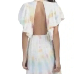 NWT Young Fabulous & Broke Cruz Open Back Ruffled Maxi Dress Papaya Summer of Love S