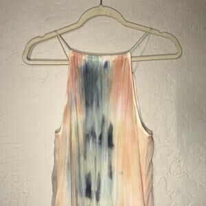 Young Fabulous & Broke Elie Trapeze in Buttercup Picnic Wash Maxi Dress. Size small. Peach tie dye water color. Lined to knee. Very beachy and lightweight. Adjustable straps with keyhole tie in back. High neck. Approximate measurements