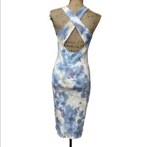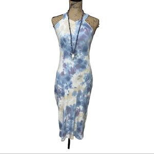 Young Fabulous & Broke Fitted Dress Tie Dye Halter Cross Back Midi Size S