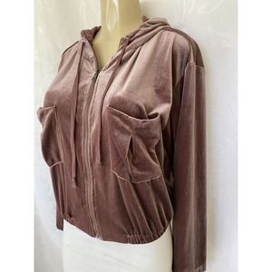 Young Fabulous & Broke Fritzy Velvet Velour Hoodie Jacket Zip Pink Mauve…