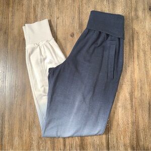 • Style: jogger, fold over waist, soft, ombré, grey blue ivory, slim, side pockets