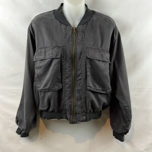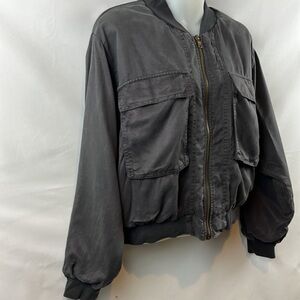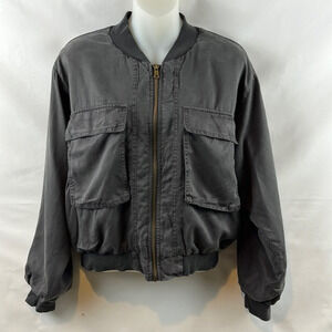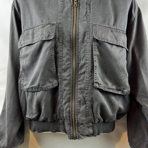 Young Fabulous & Broke Gray Utility Style Cropped Bomber Jacket Size M