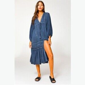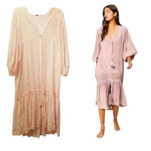 Young Fabulous & Broke 'Joplin' Boho Balloon Sleeve V-Neck Midi Dress Small NWT