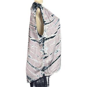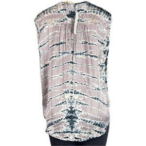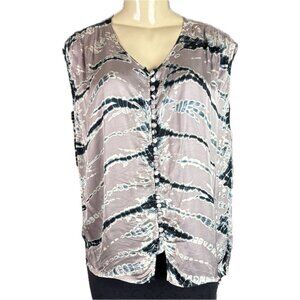 Young Fabulous & Broke L Satin Amethyst Ikat V-Neckline Button Sleeveless Blouse