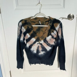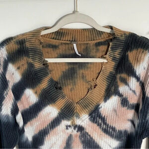 YFB Sweater Size XS Pullover Long sleeve Dropped shoulder Distressed Tie Dye pattern 100% Cotton