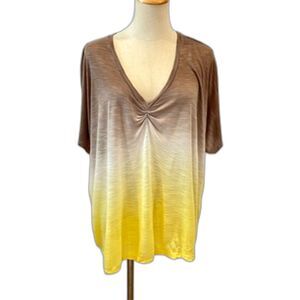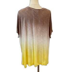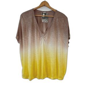 Young Fabulous & Broke Medium Ombre Tie Dye T-Shirt V-Neck Yellow Brown YFB