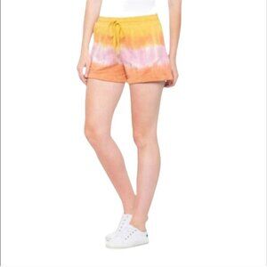 Young Fabulous & Broke NWT Parker Tie Dye Drawstring Shorts Size L. Rise 12", inseam 3", Elastic Drawstring Waist, Pockets, Cuff Hem, Orange Pink Mustard Tie Dye, Super Soft, Retail $90