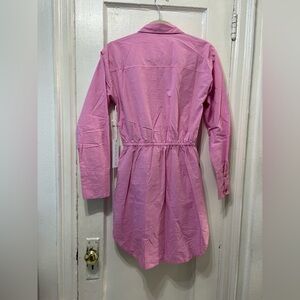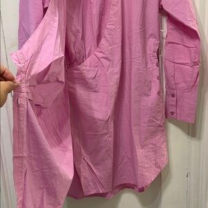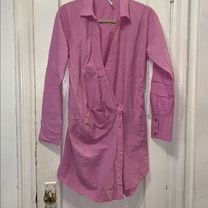 Chic pink dress with button-up design. Ideal for versatile styling.