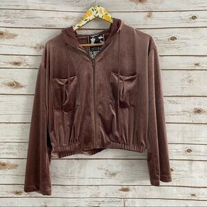 Young, Fabulous, & Broke Pink Cropped Velour Zip Hoodie Sweater Size Small