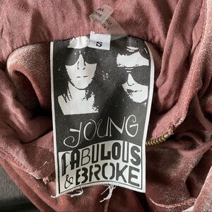Young, Fabulous, & Broke Pink Cropped Velour Zip Hoodie Sweater Size Small Approximate Measurements Armpit to armpit: 22" Length: 19" Gently worn with no flaws.