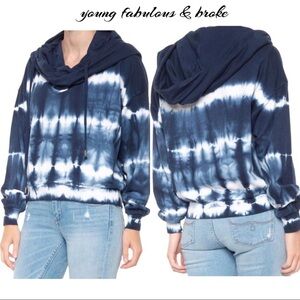 Young Fabulous & Broke Piper navy & white tie dye cowl neck hooded sweatshirt.