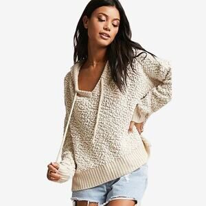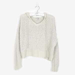Young Fabulous & Broke Popcorn Knit Hoodie Sweater Small Cream Clean Girl Comfy