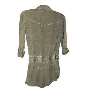 Young Fabulous & Broke River Raw Edge Hem Button Front Romper XS Green