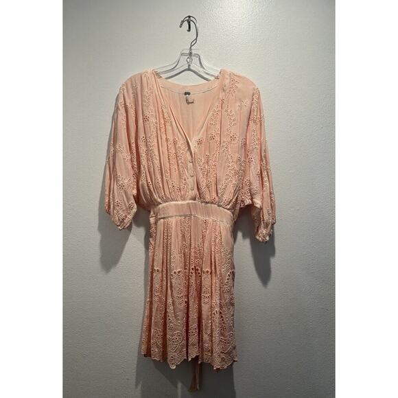 Young Fabulous & Broke Small Kyra Dress Peach Pink Tie Belt Eyelet Resort READ