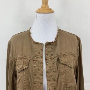 YOUNG FABULOUS & BROKE STUDDED JACKET WOMENS M MEDIUM OPEN FRONT FRAYED HEM