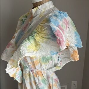 Young Fabulous & Broke Tie Dye Ruffle Mock Neck Maxi Dress Size SMALL NWT
