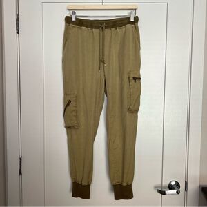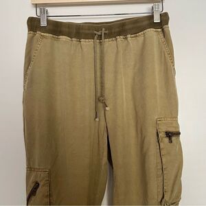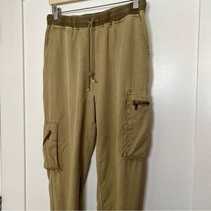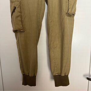 Young Fabulous Broke YFB Jogger Cargo Pants Womens Size Small Tan Drawstring Zip