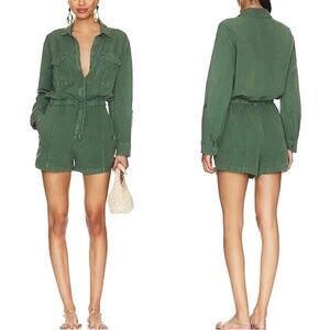 Young Fabulous & Broke YFB Lakeside Linen Romper Pigment Dyed Green REVOLVE