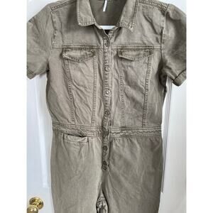 Young Fabulous & Broke YFB Utility Jumpsuit Sz L Olive Button Front Coverall