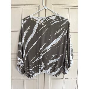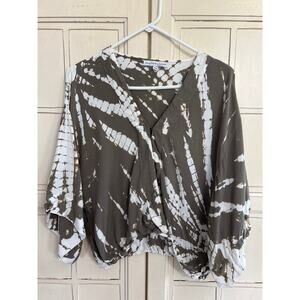 Young Fabulous & Broke size XS beige & white tie dye top in excellent condition. Crisscrosses in the front. Elastic around the waist. Measures 23” from armpit to armpit and 20” long.