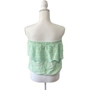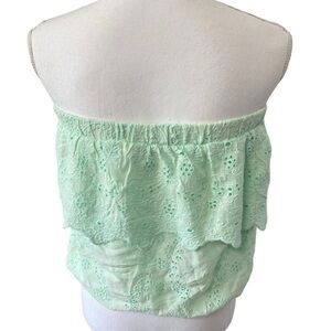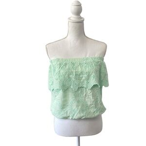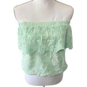 YFB Young Fabulous & Broke top. Style is called Caicos. Color is a mint green. Strapless or tube top fit. Elastic hem. Layering eyelet bodice. Size Medium