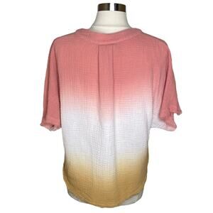 Young Fabulous and Broke Gauze Cotton Dip Dye V-Neck Top Raw Hem Women's Small